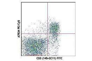 CD127 is a 60-90 kD type I transmembrane glycoprotein also known as IL-7 receptor α chain or IL-7Rα. It forms a heterodimer with the common γ chain (γc or CD132) which is shared with the receptors for IL-2, IL-4, IL-9, IL-13, IL-15, and IL-21. CD127 is expressed on immature B cells through early pre-B stage, thymocytes (except CD4/CD8 double positive thymocytes), peripheral T cells, and bone marrow stromal cells. CD127 has been reported to be an useful marker for identifying memory and effector T cells. The ligation of IL-7 with its receptor is important for stimulation of mature and immature T cells as well as immature B cells proliferation and development.