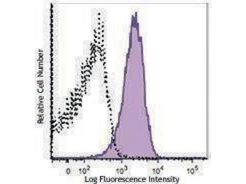 CD135 is a 130-160 kD type III tyrosine kinase receptor expressed on CD34+ hematopoietic stem cells, myelomonocytic progenitors, primitive B cell progenitors, and thymocytes. CD135 is also expressed on malignant hematopoietic cells including AML, ALL and CML-BC. CD135, also known as FMS-like tyrosine kinase-3, FLT3, STK-1, and Flk-2, is a growth factor receptor that binds the FLT3 ligand to promote the growth and differentiation of primitive hematopoietic cells. The intracytoplasmic domain of CD135 is modified by phosphorylation and has been shown to interact with Grb2, SOCS1, VAV1, and Shc.