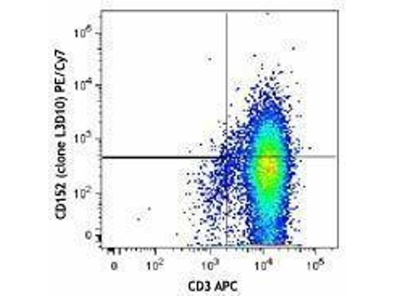 CD152, also known as Cytotoxic T-Lymphocyte Antigen 4 (CTLA-4), is a 33 kD member of the immunoglobulin superfamily. It is transiently expressed on activated T cells. CTLA4 is expressed on the surface of helper T cells and transmits an inhibitory signal to T cells. Regulatory T cells express high levels of CTLA-4. CTLA-4 (CD152) is similar to CD28 in amino acid sequence, structure, and genomic organization. Whereas CD28 delivers a costimulatory signal in T cell activation, CTLA-4 negatively regulates cell-mediated immune responses through interaction with CD80 (B7-1) and CD86 (B7-2) present on antigen presenting cells (APC). CTLA-4 is thought to play a role in the induction and maintenance of immunological tolerance as well as the development of protective immunity and thymocyte regulation. Mutations in the CTLA-4 gene have been associated with various autoimmune diseases, such as systemic lupus erythematosus, insulin-dependent diabetes mellitus, and other autoimmune diseases. A transcript of the CTLA-4 gene that may represent a native soluble form of CTLA-4 (sCTLA-4) showed that eleven of twenty patients with autoimmune thyroid disease (ATD) had a high concentration of sCTLA-4, whereas only 1 of 30 apparently healthy volunteers contained measurable levels. sCTLA-4 immunoreactivity was inhibited by its binding to B7.1, suggesting that sCTLA-4 is a functional receptor. sCTLA4 also plays a role in the initial immune response to infection of immune cells by HIV, along with the CD-1 pathway and others.