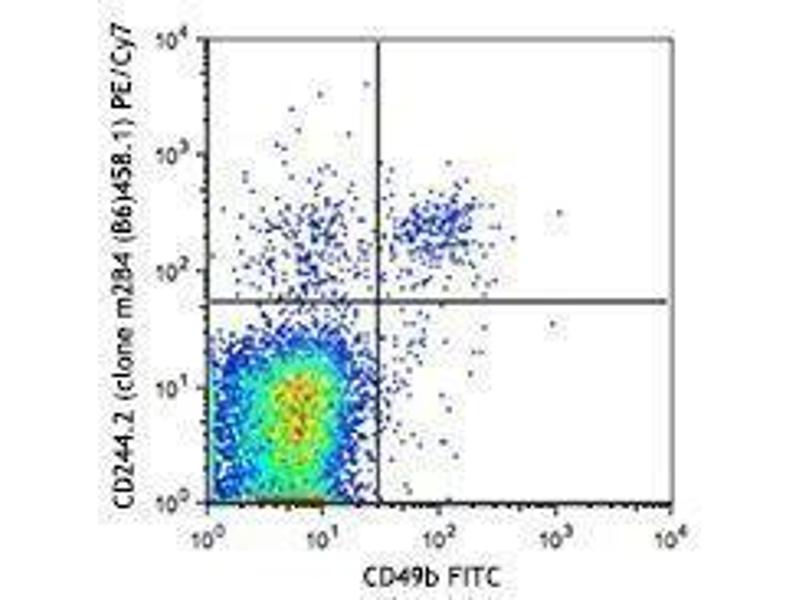 Mouse CD244, also known as 2B4, is a receptor belonging to the CD2 family of proteins involved in non- MHC-restricted cytotoxicity. It is expressed on all natural killer (NK) cells, IL-2 activated NK (LAK) cells, NKT cells, and a subset of T lymphocytes, including dendritic epidermal T cells. There are at least two isoforms of CD244.2 proteins that differ in the length of the cytoplasmic domain. The long form functions in an inhibitory manner, while the short form functions in an activating manner. The ligand of CD244 is CD48, which is expressed on all hematopoietic cells. It was reported that CD244 interaction with CD48 is essential for IL-2-driven expansion and activation of murine NK cells.