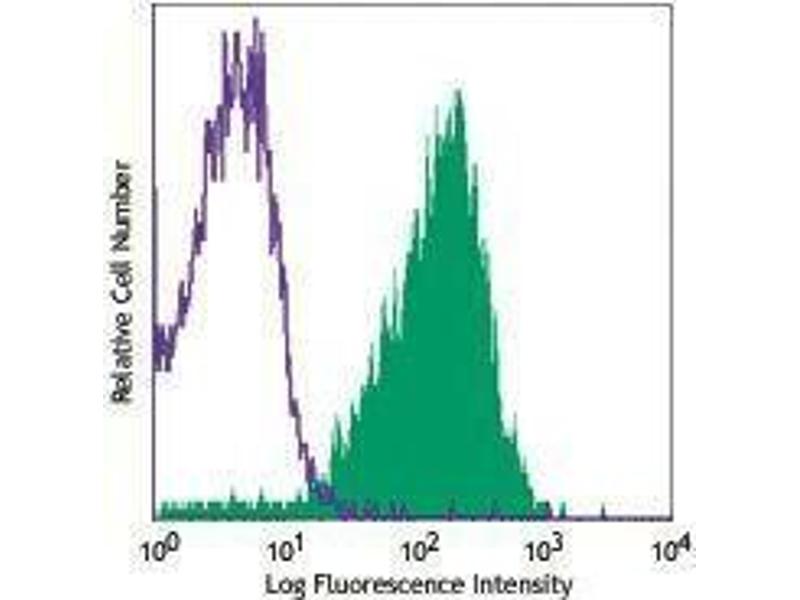 CD49d is a 150 kD α integrin chain known as α4 integrin or VLA-4 α chain. It forms a heterodimer with either integrin β1 (α4β1, VLA-4) or β7 (α4β7). CD49d is expressed broadly on T lymphocytes, B lymphocytes, monocytes, thymocytes, eosinophils, basophils, mast cells, NK cells, dendritic cells, and some non-hematopoietic cells, but not on normal red blood cells, platelets or neutrophils. VLA-4 binds to VCAM-1 (CD106) and fibronectin. α4β7 is the receptor for VCAM-1 and MAdCAM-1. CD49d participates in mononuclear cell trafficking to endothelial sites of inflammation and has roles in cell-cell interactions and cell adhesion to extracellular matrices. CD49d is involved in lymphocyte migration, T cell activation, and hematopoietic stem cell differentiation. CD49d is a marker to isolate pure populations of Treg cells due to its absence on Foxp3+ cells.