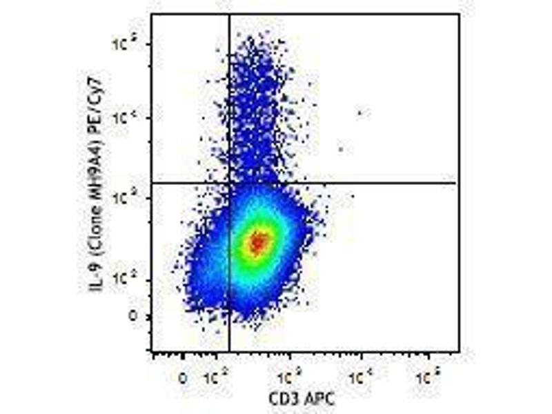 IL-9 is a potent, T cell-derived, T cell growth factor which can also enhance mast cell activity and IL-3- or IL-4- dependent proliferation of bone marrow-derived mast cells. IL-9 synergizes with erythropoietin to promote erythroid colony formation. IL-9 has also been reported to protect human T cells from apoptosis induced by IL-2 withdrawal. IL-9 is upregulated in human eosinophils by TNF-α and IL1-β. IL-9 has been reported to downregulate the oxidative burst in activated human alveolar macropahges and induce TGF-β production. The MH9A4 antibody reacts with human IL-9. The MH9A4 antibody can neutralize the bioactivity of natural or recombinant IL-9.