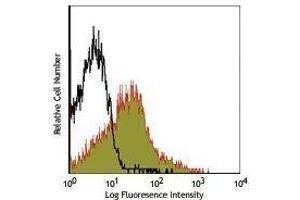 - CD43, also known as Ly-48, Leukosialin, Sialophorin, Leukocyte Sialoglycoprotein, and gp115, is a large single chain of type I transmembrane glycoprotein with abundant O-glycosylation and sialylation sites. Due to variable glycosylation and sialylation, two isoforms of CD43 have been identified. The 115 kD glycoform of CD43 is expressed on most hematopietic cells including T lymphocytes, NK cells, monocytes, granulocytes, platelets, and CD5+ B cells. It is not present on resting B cells and erythrocytes. While the 130 kD glycoform is thought to be activation-associated form primarily expressed on myeloid cells, pre-B cells, and activated T cells. It has been reported that CD43 binds to CD54 and Siglec-1. CD43 plays dual roles in cell adhesion and anti-adhesion, as well as costimulation of T cell activation and survival, and induction of apoptosis of T cells and hematopoietic progenitors. The 1B11 antibody reacts with the activation-associated glycoform of CD43. The epitope recognized by 1B11 is also shared with desialylated CD45RB. This antibody is useful for differentiation of effector CD8 T cells and memory T cells.