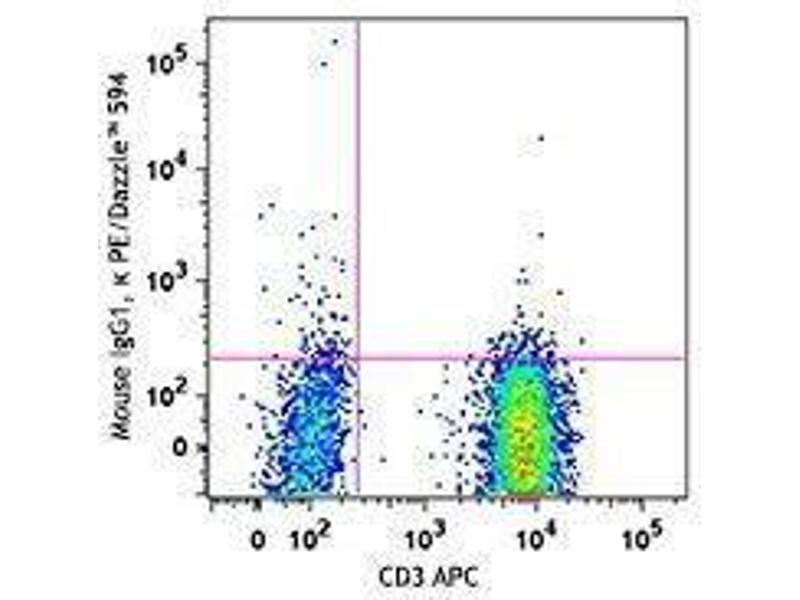 The antibody was purified by affinity chromatography and conjugated with PE/Dazzle™ 594 under optimal conditions. The solution is free of unconjugated PE/Dazzle™ 594 and unconjugated antibody.