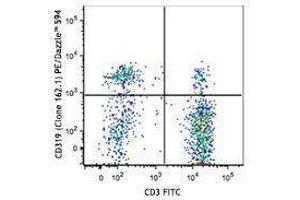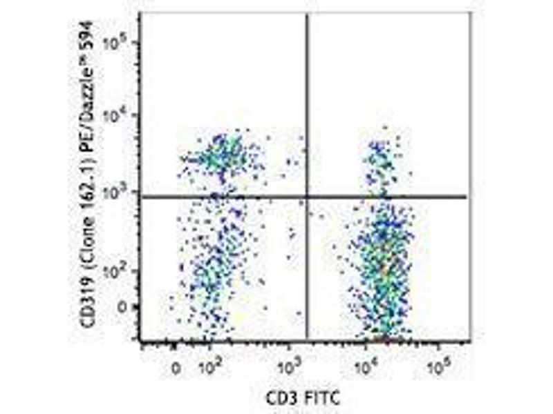 CD319 is a single-pass type l transmembrane glycoprotein, expressed on NK cells, subsets of mature dendritic cells, activated B cells, and cytotoxic lymphocytes, but not in promyelocytic, B or T cell lines. Expression is highest in the spleen, lymph nodes, and peripheral blood leukocytes, and lowest in bone marrow. Additionally, it is expressed in the small intestine, stomach, appendix, lung, and trachea. CD319 is tyrosine phosphorylated in activated NK cells and is associated with 19 and 39 kD proteins. CD319 has homology with the CD2 family of receptors within the Ig superfamily. Some of the CD2 members stimulate cytotoxicity through the CD319 associated protein.