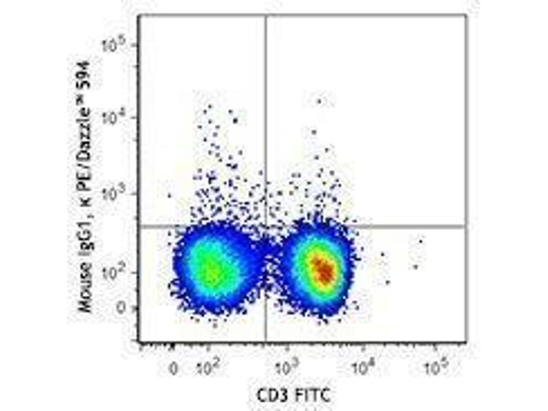 The antibody was purified by affinity chromatography and conjugated with PE/Dazzle™ 594 under optimal conditions. The solution is free of unconjugated PE/Dazzle™ 594 and unconjugated antibody.
