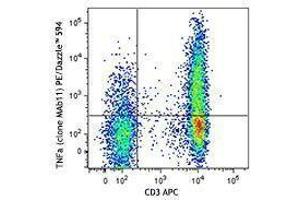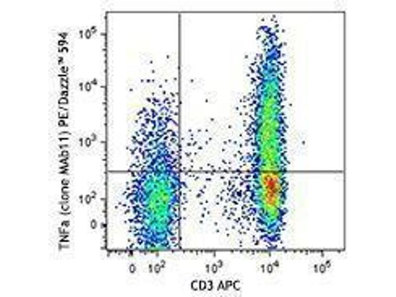 The antibody was purified by affinity chromatography and conjugated with PE/Dazzle™ 594 under optimal conditions. The solution is free of unconjugated PE/Dazzle™ 594 and unconjugated antibody.