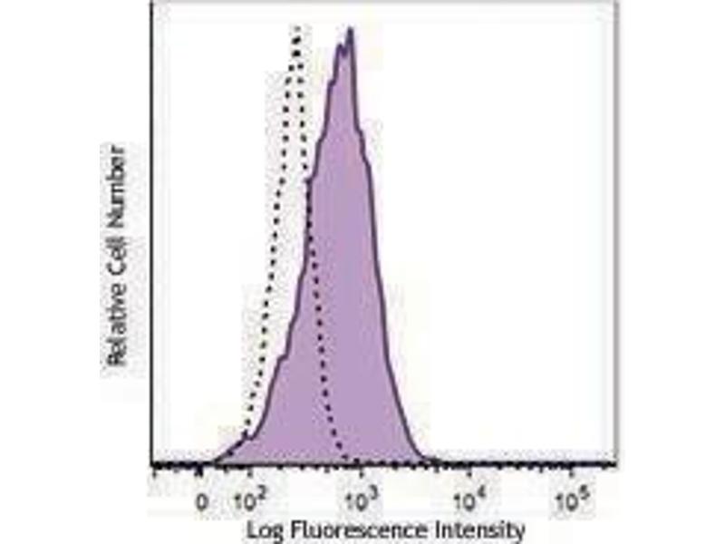 Programmed cell death 1 (PD-1), also known as CD279, is a 55 kD member of the immunoglobulin superfamily. CD279 contains the immunoreceptor tyrosine-based inhibitory motif (ITIM) in the cytoplasmic region and plays a key role in peripheral tolerance and autoimmune disease. CD279 is expressed predominantly on activated T cells, B cells, and myeloid cells. PD-L1 (B7-H1) and PD-L2 (B7-DC) are ligands of CD279 (PD-1) and are members of the B7 gene family. Evidence suggests overlapping functions for these two PD-1 ligands and their constitutive expression on some normal tissues and upregulation on activated antigen-presenting cells. Interaction of CD279 ligands results in inhibition of T cell proliferation and cytokine secretion.