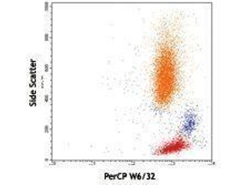 The PerCP-conjugated Mouse Monoclonal anti-HLA-A antibody (Clone W6-32) (ABIN2659889) specifically detects HLA-A in FACS.