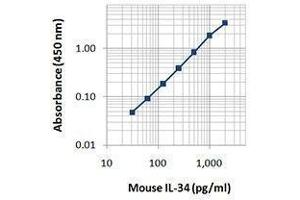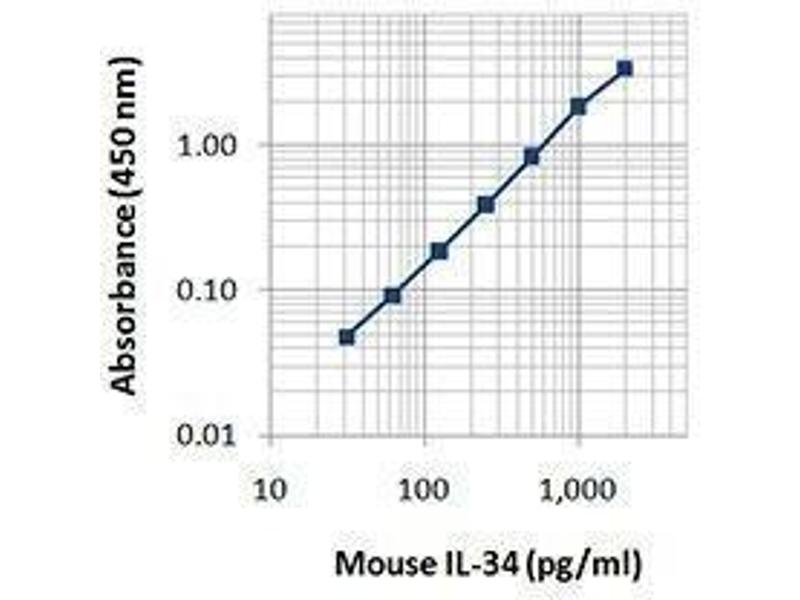 IL-34 is a homodimeric glycoprotein which contains 241 amino acids. IL-34 is expressed in the heart, brain, lung, liver, kidney, thymus, spleen, and other organs. It specifically binds to CD115/M-CSF receptor (CSF-1 receptor or c-Fms) and activates ERK1/2 phosphorylation. The function of IL-34 overlaps with CSF-1 to regulate myeloid lineage differentiation, proliferation, and survival. Elevated levels of IL-34 are seen in the plasma of rheumatoid arthritis patients, but can be decreased in response to therapy. IL-34 levels are also increased in the serum of cancer patients and associated with poor prognosis. Mouse IL-34 shares 71 % sequence identity with human IL-34 on the amino acid level.