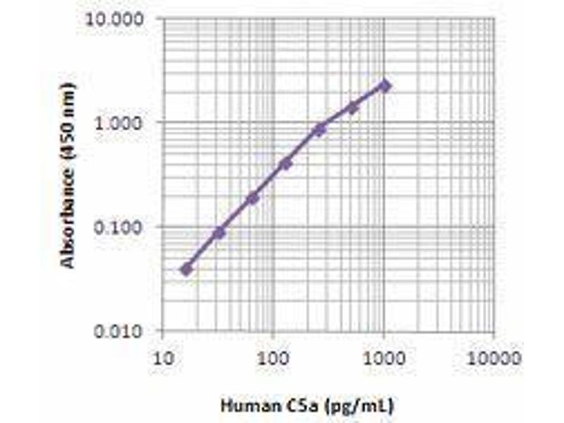 C5, complement component 5, is a protein involved in the complement system. It is cleaved into C5a and C5b by the C3/C5 convertase. The smaller fragment C5a is an anaphylatoxin and is released into the fluid surroundings. C5a is a mediator of local inflammatory process. It induces the contraction of smooth muscle, increases vascular permeability and causes histamine release from mast cells and basophilic leukocytes. C5a also stimulates the locomotion of polymorphonuclear leukocytes (chemokinesis) and direct their migration toward sites of inflammation (chemotaxis). C5a contains 74 amino acids and is rapidly metabolised by a serum enzyme, carboxypeptidase B to a 73 amino acid form, C5a des-Arg. The major fragment C5b binds to the membrane initiating the spontaneous assembly of the late complement components, C5-C9, into the membrane attack complex.