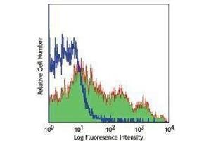- CD43, also known as Ly-48, Leukosialin, Sialophorin, Leukocyte Sialoglycoprotein, and gp115, is a large single chain of type I transmembrane glycoprotein with abundant O-glycosylation and sialylation sites. Due to variable glycosylation and sialylation, two isoforms of CD43 have been identified. The 115 kD glycoform of CD43 is expressed on most hematopietic cells including T lymphocytes, NK cells, monocytes, granulocytes, platelets, and CD5+ B cells. It is not present on resting B cells and erythrocytes. While the 130 kD glycoform is thought to be activation-associated form primarily expressed on myeloid cells, pre-B cells, and activated T cells. It has been reported that CD43 binds to CD54 and Siglec-1. CD43 plays dual roles in cell adhesion and anti-adhesion, as well as costimulation of T cell activation and survival, and induction of apoptosis of T cells and hematopoietic progenitors. The 1B11 antibody reacts with the activation-associated glycoform of CD43. The epitope recognized by 1B11 is also shared with desialylated CD45RB. This antibody is useful for differentiation of effector CD8 T cells and memory T cells.