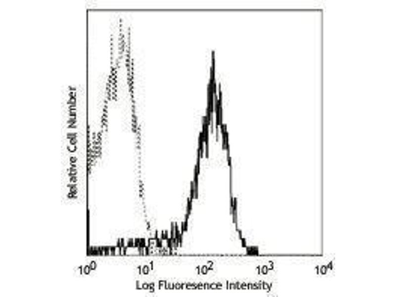 CD126 is an 80 kD IL-6 receptor α chain also known as IL-6R. It is a member of the immunoglobulin superfamily that is expressed on activated T and B cells, monocytes, hepatocytes, and plasma cells. High affinity IL-6 receptors are formed by the non-covalent association of CD126 and the IL-6 receptor β chain (CD130 or gp130). CD126 binds IL-6 with low affinity, but does not signal. The β chain (gp130, CD130) does not bind IL-6 by itself, but associates with the α-chain/IL-6 complex to initiate signal transduction. IL-6 binding to the receptor complex results in the stimulation of B and T cells, and hematopoietic precursor proliferation and differentiation. The D7715A7 (15A7) antibody blocks IL-6/IL-6 receptor interactions.