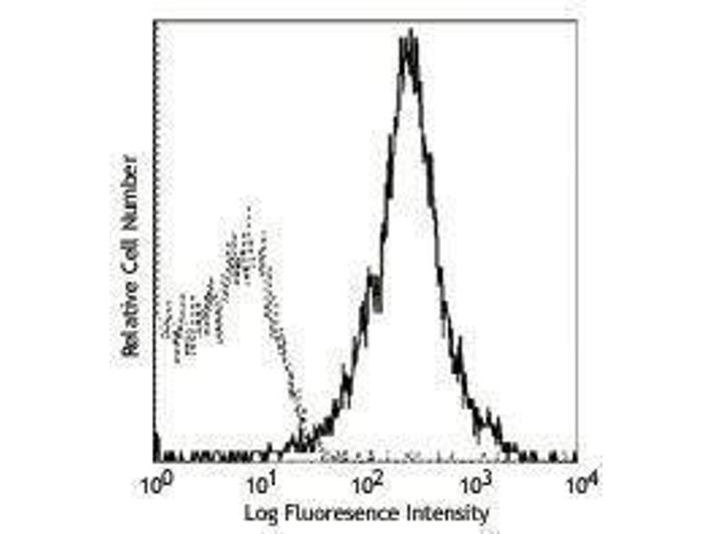 CD49d is a 150 kD glycoprotein, also known as α4 integrin or VLA-4 α chain. It is a member of the integrin family, expressed on T and B cells, monocytes, eosinophils, basophils, mast cells, thymocytes, NK cells, and dendritic cells. CD49d is a heterodimer expressed with either of two β chains, β1 (CD29) or β7, to form the VLA-4 (integrin α4β1) or LPAM-1 (integrin α4β7) complexes. CD49d plays a critical role in both adhesion and T cell costimulation. The primary ligands for CD49d are VCAM-1, MAdCAM-1, and fibronectin. The 9C10(MFR4.B) antibody, in combination with the R1-2 monoclonal antibody, completely blocks VCAM-1 binding to VLA-4.