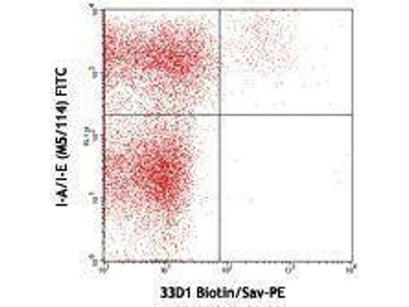 - 33D1 antigen, also known as DCIR2 (dendritic cell inhibitory receptor 2), is reported to be a dendritic cell marker on subpopulation DC in the spleen, thymus, and Peyer's patch. It is reported that most N418 (CD11c)+ cells in spleen are also 33D1 positive. Bone marrow dendritic cells upregulate 33D1 antigen expression after incubation with GM-CSF.