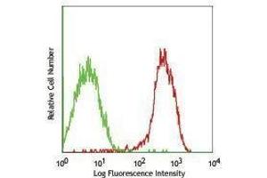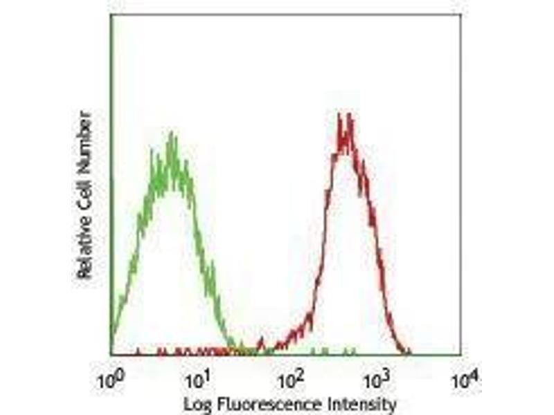 ErbB3/HER3 is a receptor tyrosine kinase and a member of the epidermal growth factor receptor family. erbB3/HER3 binds the heregulin ligands and contains 4 furin-like repeats, 2 cheY receiver domains, and a tyrosine kinase domain with a predicted molecular weight approximately 148 kD. Signaling through the erbB3/HER3 receptor induces proliferation and differentiation in some cell types, the receptor is widely expressed in many tissues including kidney, lung, brain, placenta, skin and stomach. erbB3/HER3 forms constitutively active heterodimers with erbB2/HER2 in a subset of human mammary tumors, expression of erbB3/HER3 reported be linked to favorable outcome in bladder and ovarian cancer. erbB3/HER3 has been shown to interact with a number of proteins including EGF receptor, erbB2/HER2, erbB4, Grb2, Grb7, SOS1, cdk5, SHC, FAK, PTK6, and others. The erbB3/HER3 receptor is extensively phosphorylated at residues T873 and S1123 (by cdk5), Y1199, Y1262, Y1289, and Y1328. The 1B4C3 antibody has been shown to be useful for flow cytometric detection of human erbB3/HER3.
