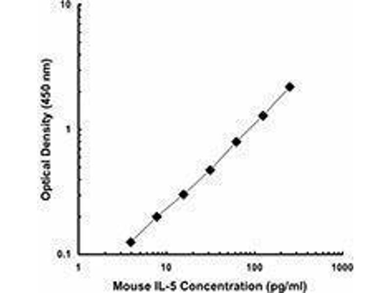 IL-5 is a homodimeric, disulphide-linked protein produced by T-cells. The native protein can have variable molecular weight as a result of glycosylation. Monomeric mouse IL-5 is a 113 amino acid protein with a reported molecular weight of 35-37 kD for the homodimeric protein. Mouse and human IL-5 are approximately 70 % identical. IL-5 has been shown to promote the growth of immature hematopoietic BFU-E progenitors and stimulates the activation, and differentiation of eosinophils, and promotes the generation of cytotoxic lymphocytes . Mouse IL-5 induces the differentiation and proliferation of pre-activated B-cells and stimulates the production and secretion of IgM and IgA by B-cells stimulated with bacterial endotoxin. The TRFK4 antibody reacts with mouse interleukin-5 (IL-5). The TRFK4 antibody can neutralize the bioactivity of natural or recombinant IL-5.