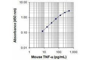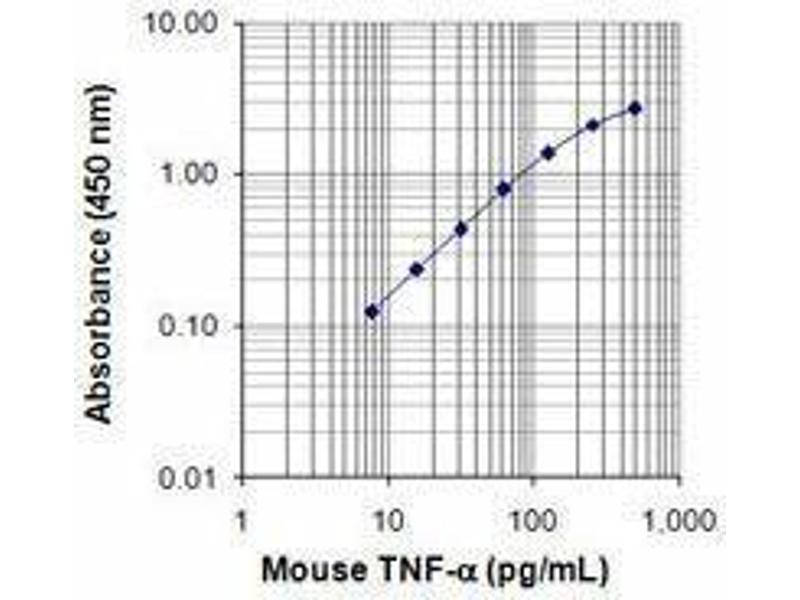 TNF-α is secreted by macrophages, monocytes, neutrophils, T-cells (principally CD4+), and NK-cells. Many transformed cell lines also secrete TNF-α. Monomeric mouse TNF-α is 156 amino acid protein (N-glycosylated) with a reported molecular weight of 17.5 kD protein. TNF-α forms multimeric complexes, stable trimers are most common in solution. A 26 kD membrane form of TNF-α has also been described. TNF-α binding to surface receptors elicits a wide array of biologic activities including: cytolysis and cytostasis of many tumor cell lines in vitro, hemorraghic necrosis of tumors in vivo, increased fibroblast proliferation, and enhanced chemotaxis and phagocytosis in neutrophils.
