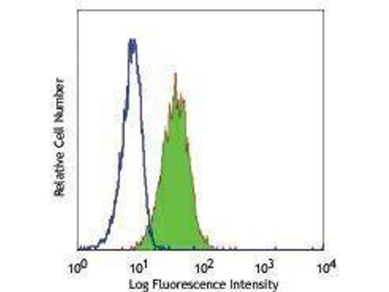 The 67D2 monoclonal antibody recognizes human CD164 also known as sialomucin CD164, MUC-24, and multi-glycosylated core protein 24. CD164 is a single pass transmembrane protein with short cytoplasmic tail that is highly N- and O-glycosylated. This protein contains sialic acid and a Ser-Gly motif that may serve as an attachment for a glycosaminoglycan side chain. Three splice variants of CD164 have been reported with apparent molecular weights ranging between 80-100 kD. CD164 is expressed in bone marrow, bone marrow stromal cells, and CD34+ hematopoietic cells myeloid and erythroid progenitors, and activated basophils. Expression has also been reported on a variety of carcinomas and leukemic cells and in the small intestine, colon, lung, and thyroid. CD164 plays a role in cell adhesion and proliferation and acts as a negative signaling molecule for hematopoietic progenitor cells. CD164 has also been reported to be involved in myogenic differentiation and cancer metastasis. The 67D2 antibody has been shown to be useful for the flow cytometric detection of human CD164, Western blotting under non-reducing conditions (detects an 80-100 kD protein as well as a high molecular weight aggregate of approximately 220 kD), and immunofluorescence.