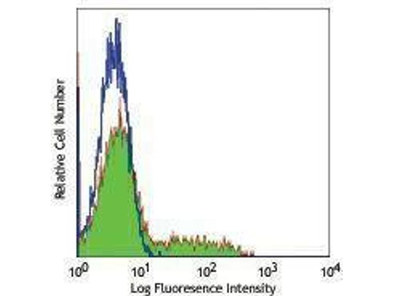 CD195, also known as CCR5, is a 45 kD G protein-coupled seven transmembrane CC-chemokine receptor. It binds to MIP-1α, MIP-1β, and RANTES and is expressed on a subset of T cells and monocytes. CD195 mediates an intracellular signal thought to induce cell differentiation and proliferation. CCR5 has also been shown to act as a co-receptor for R5 HIV-1 cell entry, modification of CCR5 by sulfation contributes to the efficiency of HIV-1 entry. Recent studies have shown CCR5 to play a role in a variety of other human diseases, ranging from infectious and inflammatory diseases to cancer.