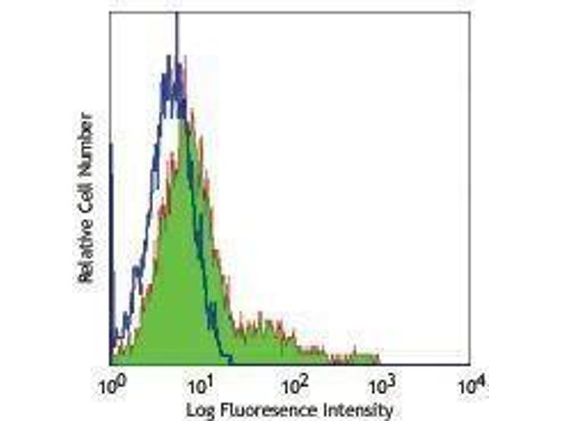 - CD43, also known as Ly-48, Leukosialin, Sialophorin, Leukocyte Sialoglycoprotein, and gp115, is a large single chain of type I transmembrane glycoprotein with abundant O-glycosylation and sialylation sites. Due to variable glycosylation and sialylation, two isoforms of CD43 have been identified. The 115 kD glycoform of CD43 is expressed on most hematopietic cells including T lymphocytes, NK cells, monocytes, granulocytes, platelets, and CD5+ B cells. It is not present on resting B cells and erythrocytes. While the 130 kD glycoform is thought to be activation-associated form primarily expressed on myeloid cells, pre-B cells, and activated T cells. It has been reported that CD43 binds to CD54 and Siglec-1. CD43 plays dual roles in cell adhesion and anti-adhesion, as well as costimulation of T cell activation and survival, and induction of apoptosis of T cells and hematopoietic progenitors. The 1B11 antibody reacts with the activation-associated glycoform of CD43. The epitope recognized by 1B11 is also shared with desialylated CD45RB. This antibody is useful for differentiation of effector CD8 T cells and memory T cells.