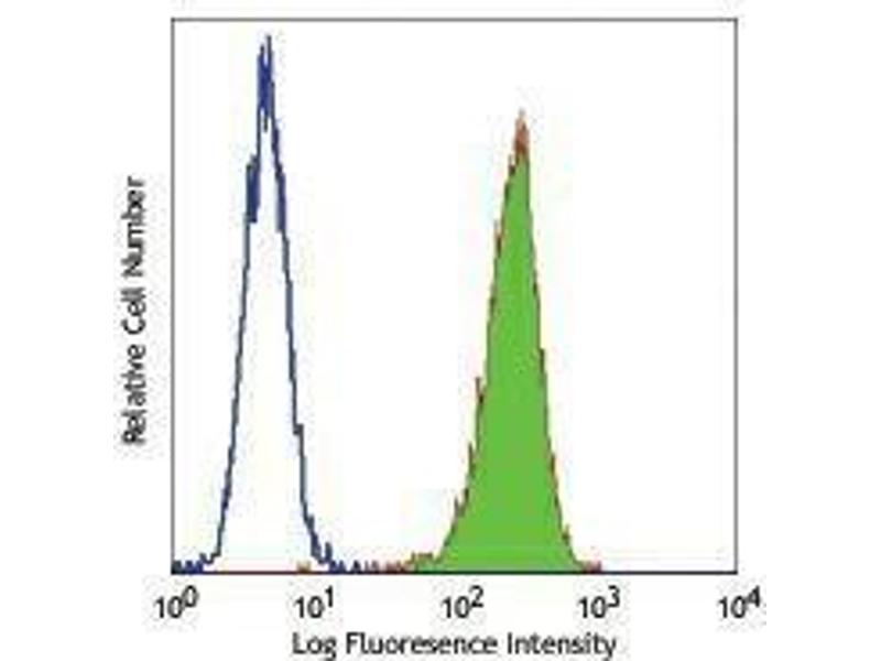 The FITC-conjugated Mouse Monoclonal anti-CD51/CD61 antibody (Clone 23C6) (ABIN2661770) specifically detects CD51/CD61 in FACS.