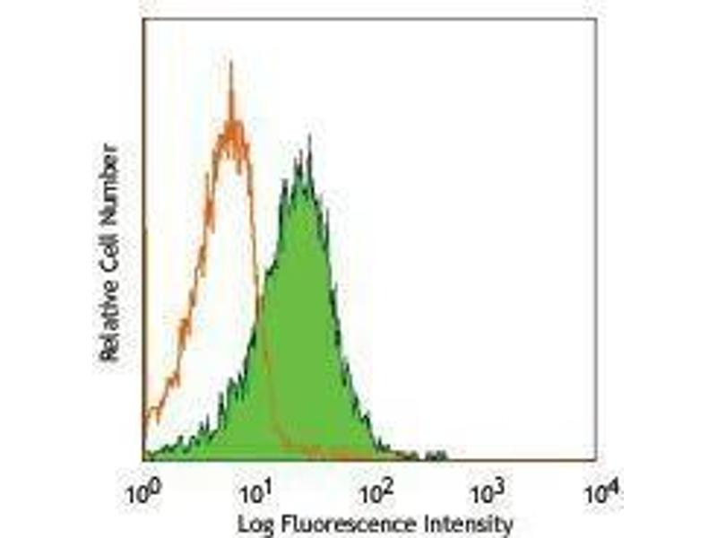 Integrin β7 is a 130 kD glycoprotein, also known as integin βp. It is a member of the Ig superfamily. In association with integrin α4 or αE chain, β7 forms α4/β7 or αE/β7 heterodimer. α4/β7 (CD49d/β7, LPAM-1) is expressed on majority of peripheral lymphocytes, small subsets of thymocytes and bone marrow progenitors. LPAM-1 binds to several ligands, VCAM-1, MAdCAM-1 and fibronectin, and is involved in lymphocyte adhesion, some hematopoietic progenitor cells migration. αE/β7 (CD103/β7,αIEL/β7) is expressed on intestinal intraepithelial lymphocytes (IEL), dendritic epidermal T cells, T regulatory cells, a subset of CD8+ T cells in lymph nodes and lamina propria. CD103/β7 complex is thought to play a role in lymphocyte retention via interaction with its lignd E-Cadherin. The FIB27 antibody has been reported to react with mouse and human β7 integrin and to block β7 integrin-mediated cell adhesion in in vitro and in vivo studies.