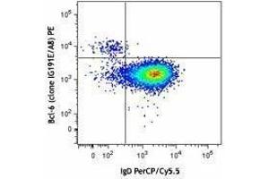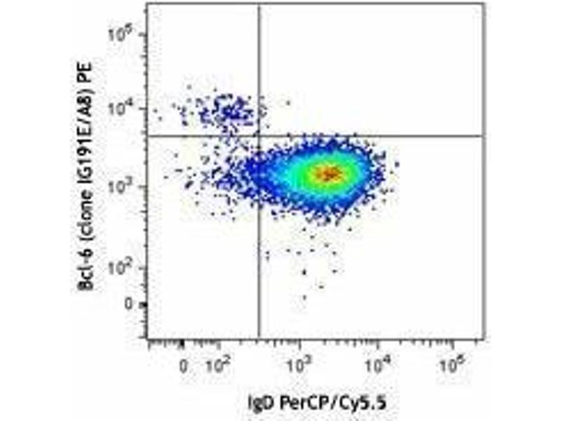 B-cell lymphoma 6 (Bcl-6), is an 80 kD homodimer and member of the BTB-POZ zinc finger family. It consists of one BTB (POZ) domain and six C2H2-type zinc fingers. Bcl-6 is a transcriptional repressor as well as a master regulator of germinal center reaction. On B cells, Bcl-6 induces proliferation, antibody class switching and affinity maturation, while inhibits its differentiation to plasma cells. On T cells, Bcl-6 induces its differentiation to TFH. This molecule is also expressed in some B cell lymphomas and breast cancer cells.