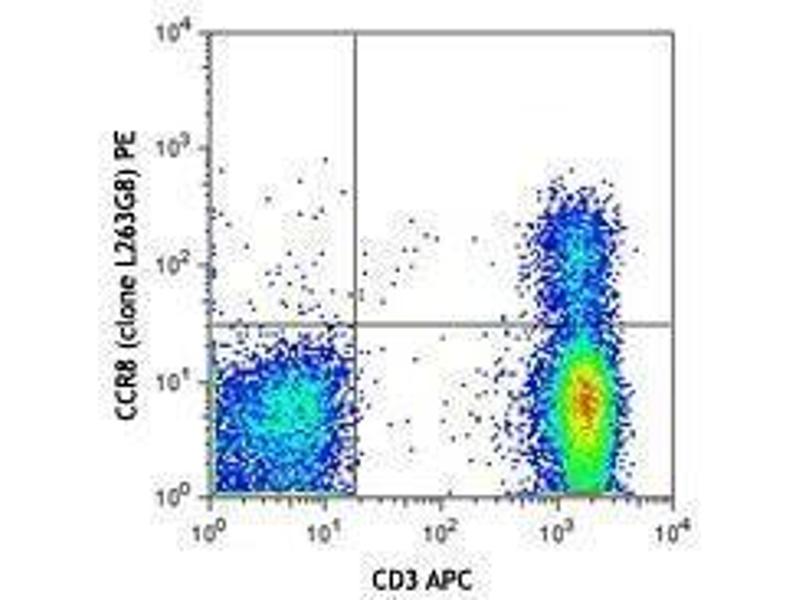 CCR8, also known as ChemR1, TER1, and CKR-L1, belongs to the beta chemokine receptor family. It is predicted to be a seven transmembrane protein similar to G protein-coupled receptors. CCR8 is expressed on some subsets of T cells, monocytes, macrophages, eosinophils, thymocytes, Langerhans cells, neurons, and vascular smooth muscle cells. Binding with its ligand CCL1, CCR8 plays a role in the regulation of monocyte chemotaxis and thymic cell apoptosis. It has been reported that CCR8 is also a receptor for CCL18. CCR8 is also believed to be an alternative coreceptor to CD4 for HIV-1 infection.