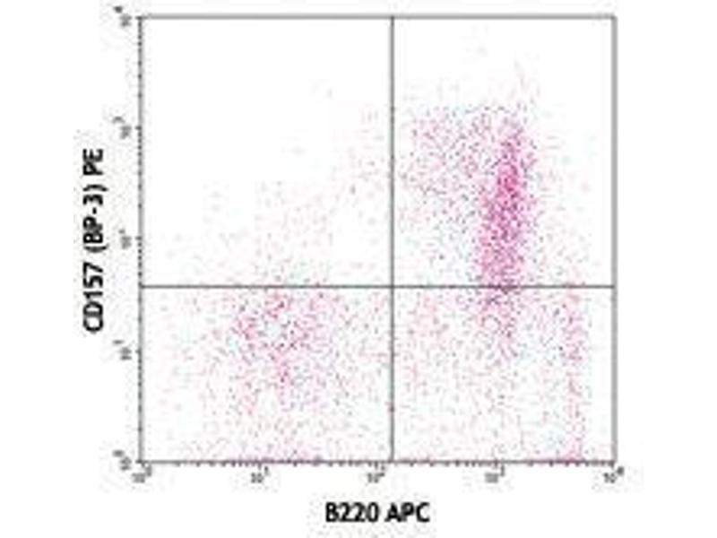 CD157 is an ectoenzyme member of the ADP-ribosyl cyclase family, also known as ADP-ribosyl cyclase 2, BST-1 (bone marrow stromal cell antigen 1), BP-3 antigen. It has a molecular weight between 40 - 46 kD and is a GPI-linked cell membrane glycoprotein which is expressed as a homodimer. CD157 is expressed by macrophages, neutrophils, bone marrow stromal cells, endothelial cells, follicular dendritic cells, and T and B cell progenitors prior to the rearrangement of the antigen receptors. Besides the ectoenzyme activity, it also plays a role in neutrophil migration and adhesion.