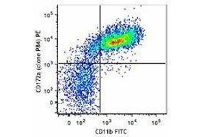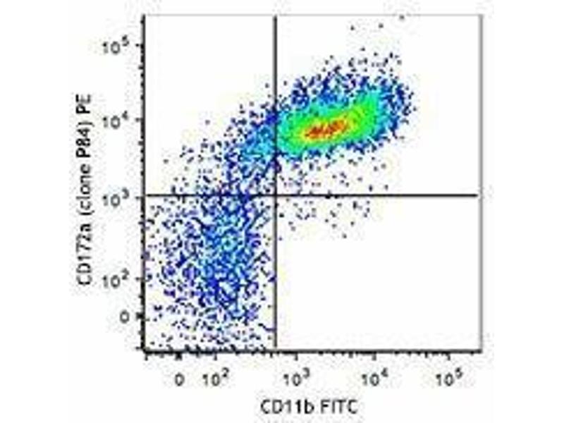 CD172a, also known as SIRPα, is a type I transmembrane protein with one V-set Ig-like and two C-set Ig-like domains in the extracellular portion, and two ITIM motifs and a proline-rich region in the cytoplasmic tail. CD172a is expressed by monocytes, macrophages, myeloid cells, and neuronal tissue. The phosphorylation of SIRPα ITIMs induces the recruitment and activation of the tyrosine phosphatases PTPN6 and PTPN11, resulting in the negative regulation of several biological processes. The ligands of CD172a are CD47, SP-A, and SP-D.