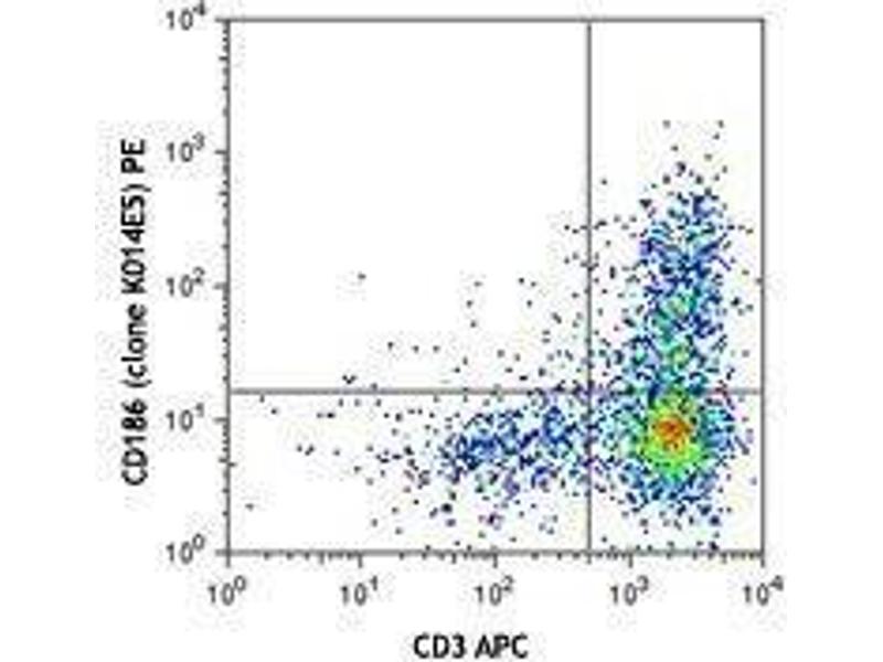 CD186, also known as CXCR6, is a 39 kD, G-protein coupled chemokine receptor, with seven transmembrane-spanning regions. CXCR6 is expressed on activated and memory T cells. Its ligand is the chemokine CXCL16. CXCR6 is involved in the recruitment of cells to inflamed sites and is also a coreceptor for HIV.