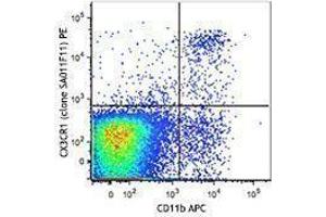 CX3CR1 is a 40 kD, G-protein coupled receptor, with seven transmembrane regions. CX3CR1 is expressed by resident and alternatively activated macrophages (M2), a subset of monocytes, dendritic cells (DCs), NK cells, a subset of memory T cells, and mast cells. CX3CR1 is involved in cell recruitment during inflammation and participates in cell adhesion and extravasation from blood vessels. Its ligand is CX3CL1, also known as fractalkine or neurotactin. CX3CR1 is also a coreceptor for HIV1 and variations in this gene leads to increased susceptibility to HIV. In the brain, it is expressed by glial cells, which interact with CX3CL1 expressed by neurons.
