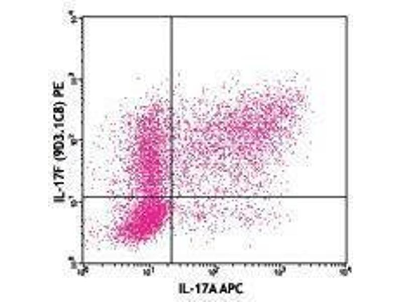Interleukin 17F (IL-17F) is a 37 kD IL-17 family member. The IL-17 family consists of six members including IL-17 (also called IL-17A), IL-17B, IL-17C, IL-17D, IL-17E (also called IL-25), and IL-17F. IL-17F shares the strongest similarity to IL-17A and forms a homodimer or heterodimer with IL-17A. It is produced by Th17 cells, mast cells, basophils, and epithelial cells. IL-17F is an important regulator of inflammatory responses. It is involved in host defense against mucoepithelial infection by Staphylococcus aureus and Citrobacter rodentium. Over expression of IL-17F gene in the airway of mice is associated with airway neutrophilia, the induction of many cytokines, an increase in airway hyperreactivity, and mucus hyper-secretion. IL-17F is also involved in cancer immunity and autoimmune responses. IL-17F, like IL-17A, depends on IL-17R for its signaling in vitro and in vivo. P38 MAPK, ERK1/2, Act1 (NF-KB activator protein 1), and TRAF6 are involved in IL-17F signaling.
