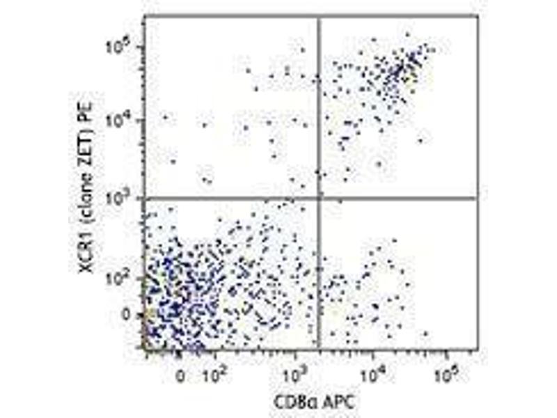 XCR1, also known as GPR5 or CCXCR1, is a 38 kD, G-protein coupled, seven transmembrane receptor, and the only member of the "C" chemokine receptor family. XCR1 mediates chemotaxis of XCL1 and XCL2 (lymphotactin-1 and -2), and defines a subset of CD8α+ conventional dendritic cells capable of antigen cross-presentation.