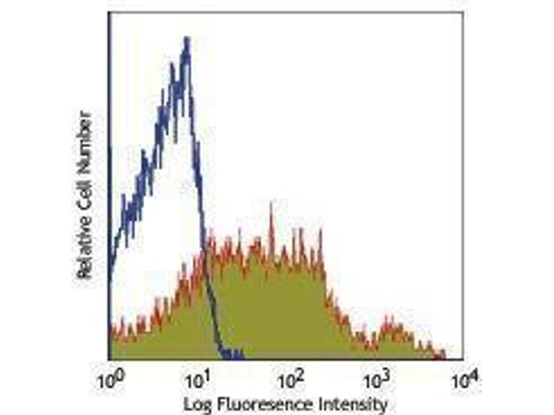 - CD43, also known as Ly-48, Leukosialin, Sialophorin, Leukocyte Sialoglycoprotein, and gp115, is a large single chain of type I transmembrane glycoprotein with abundant O-glycosylation and sialylation sites. Due to variable glycosylation and sialylation, two isoforms of CD43 have been identified. The 115 kD glycoform of CD43 is expressed on most hematopietic cells including T lymphocytes, NK cells, monocytes, granulocytes, platelets, and CD5+ B cells. It is not present on resting B cells and erythrocytes. While the 130 kD glycoform is thought to be activation-associated form primarily expressed on myeloid cells, pre-B cells, and activated T cells. It has been reported that CD43 binds to CD54 and Siglec-1. CD43 plays dual roles in cell adhesion and anti-adhesion, as well as costimulation of T cell activation and survival, and induction of apoptosis of T cells and hematopoietic progenitors. The 1B11 antibody reacts with the activation-associated glycoform of CD43. The epitope recognized by 1B11 is also shared with desialylated CD45RB. This antibody is useful for differentiation of effector CD8 T cells and memory T cells.