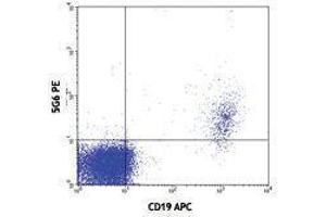 Siglec-10 is a lectin that specifically binds α-2,3- or α-2,6-linked sialic acid. It is a member of the Ig-superfamily and is expressed in monocytes, eosinophils, B cells, and a subset of NK cells. Siglec-10 is a single pass transmembrane protein. The extracellular domain contains one V-set Ig-like domain and three C2-set domains, the cytoplasmic domain contains one immunoreceptor tyrosine-based inhibitor motif (ITIM) which, after tyrosine-phosphorylation, recruits SH2-family phosphatases such as SHP-1 and PTPN6, resulting in the blocking of the signal transduction. CD24 and the vascular adhesion protein-1 (VAP-1) have been described as ligands of Siglec-10.