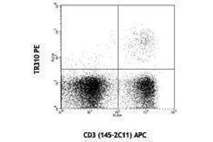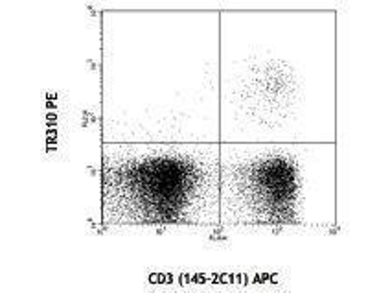 - The TR310 antibody reacts with the mouse T cell receptor Vβ7 segment . T cells expressing the α/β T cell receptor use clonally distributed TCRs to recognize cell-bound antigens such as peptide/MHC complexes and viral superantigens. The α/β TCR is an oligomeric TCR complex composed of covalently bound α and β chains involved in antigen recognition and the non-covalently associated monomorphic proteins CD3δ, γ, ε, and ζ chains. The TR310 antibody reacts with one such clonally distributed TCR β chain known as Vβ7. Vβ7 is expressed on a small subpopulation of both CD4+ and CD8+ T cells. The TR310 antibody has been used for the identification of Vβ7 expressing T cells by flow cytometry and immunoprecipitation.