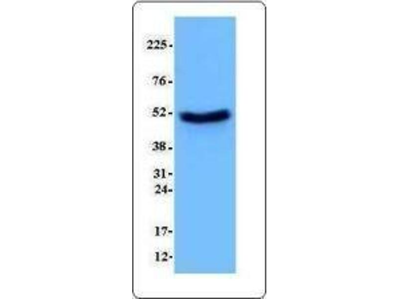 - P53 is a 53 kD protein that forms tetramers and functions as a tumor suppressor and transcriptional activator of genes that inhibit growth and/or invasion, cell cycle checkpoint after irradiation, DNA repair, apoptotic induction, signal transduction, and cell adhesion. This protein is localized to the nucleus when activated and can be upregulated by genotoxic or other cellular stresses. p53 is modified by phosphorylation, acetylation, ribosylation, ubiquitination, and sumoylation, ubiquination targets p53 for degradation via mdm2. This protein interacts with a variety of proteins including mdm2, mdmx, topoisomerase I, PML3, Bcl-XL, Bcl-2, Chk1, JNK, p38, HIPK2, CK2, DNA-PK, p300/CBP, PCAF, PARP1, and HDAC1-3. Mutant p53 associates with p63 and p73.