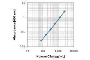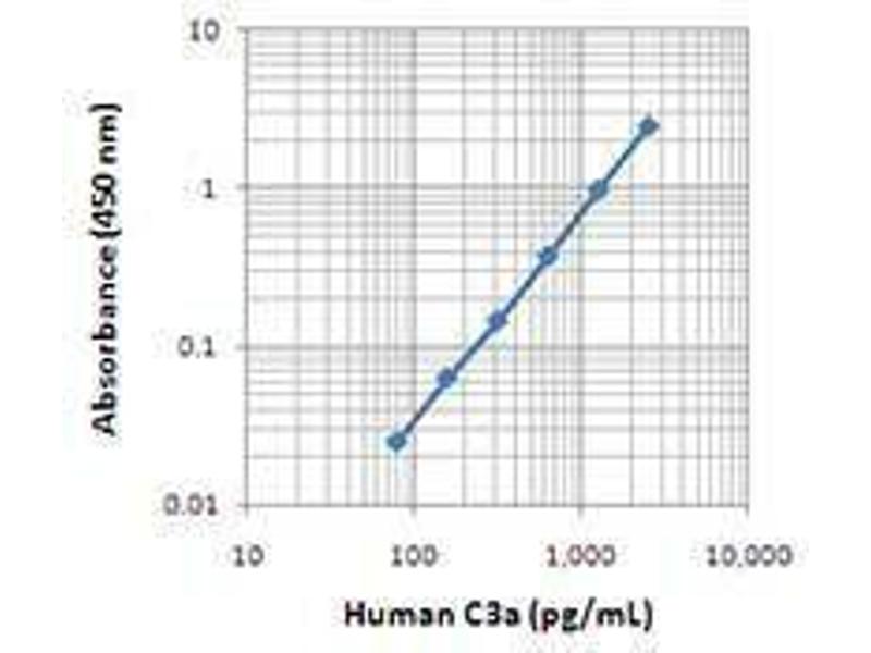 C3, complement component 3, is a 195 kD glycoprotein heterodimer that is linked by disulfide bonds. It is the fourth complement component to react in the classical pathway and it is also a reactant in the alternative complement pathway. C3 convertase splits C3 into C3b and C3a. C3b can bind covalently, via its reactive thioester, to cell surface carbohydrates or immune aggregates. Macrophages and neutrophils have receptors for C3b. C3a is released into the surrounding fluids. It can bind to receptors on basophils and mast cells triggering them to release their vasoactive contents (e.g., histamine). Because of the role of these materials in anaphylaxis, C3a is called an anaphylatoxin. In blood, the C3a fragment is rapidly desarginated by serum carboxypeptidase N enzyme to generate C3a desArg. Both C3a and C3a desArg are not glycosylated.