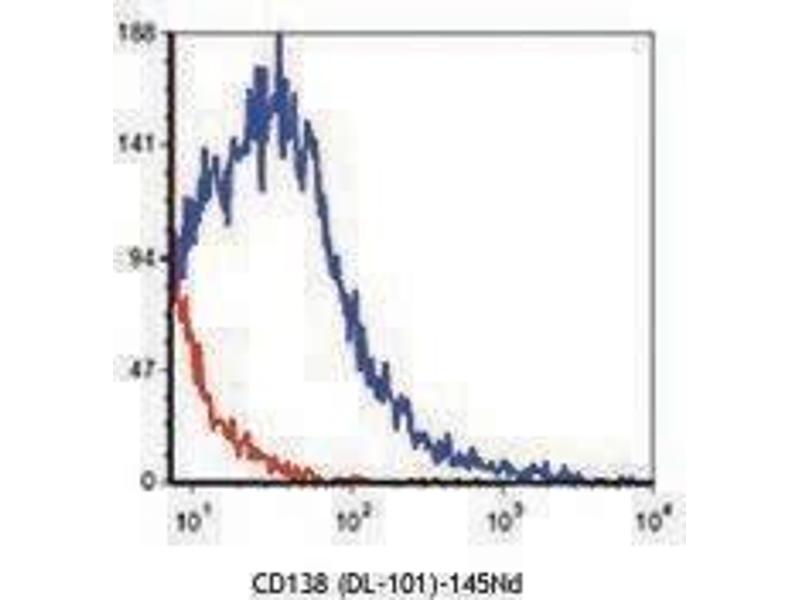 CD138, a member of the syndecan protein family, is a type I integral membrane heparin sulfate proteoglycan also known as Syndecan-1. Syndecan-1 participates in cell proliferation, cell migration, and cell-matrix adhesion via interaction with collagen, fibronectin, and other soluble molecules (such as FGF-basic). It is expressed on normal and malignant human plasma cells, pre-B cells, epithelial cells, and endothelial cells.