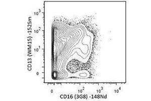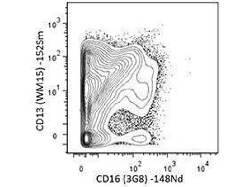 - CD16 is known as low affinity IgG receptor III (FcγRIII). It is expressed as two distinct forms (CD16a and CD16b). CD16a (FcγRIIIA) is a 50-65 kD polypeptide-anchored transmembrane protein. It is expressed on the surface of NK cells, activated monocytes, macrophages, and placental trophoblasts in humans. CD16b (FcγRIIIB) is a 48 kD glycosylphosphatidylinositol (GPI)-anchored protein. Its extracellular domain is over 95 % homologous to that of CD16a, and it is expressed specifically on neutrophils. CD16 binds aggregated IgG or IgG-antigen complex which functions in NK cell activation, phagocytosis, and antibody-dependent cell-mediated cytotoxicity (ADCC).