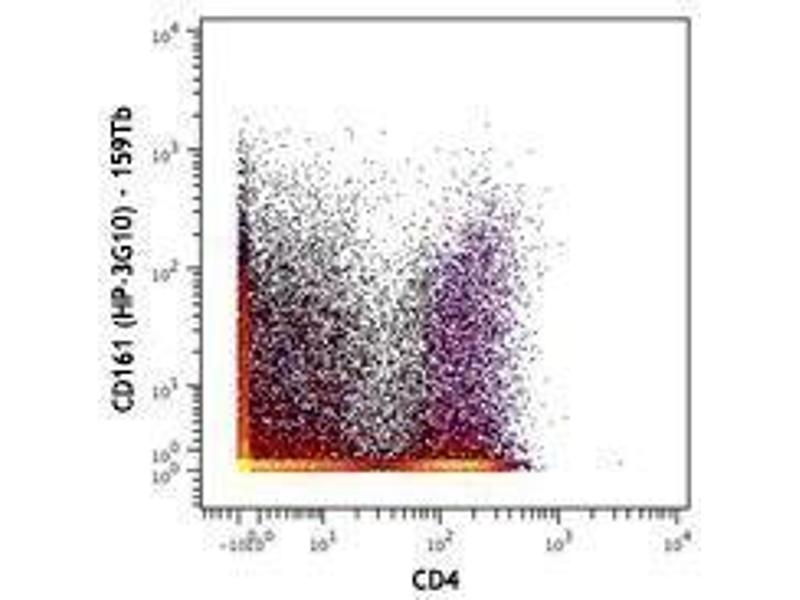 CD161 is a type II transmembrane glycoprotein, also known as NKR-P1A, that is expressed as a 40-44 kD homodimer. It is a member of the C-type lectin superfamily. CD161 is expressed on a majority of NK cells, NKT cells, and subsets of peripheral T cells and CD3+ thymocytes. It has been reported that Th17 cells are a subpopulation of CD4+CD161+CCR6+ cells. While the biological function of CD161 is not clear, it has been suggested to serve either as a stimulatory receptor or to inhibit NK cell-mediated cytotoxicity and cytokine production. LLT-1 (lectin-like transcript-1, also named as osteoclast inhibitory lectin or CLEC2D) is the ligand of CD161.