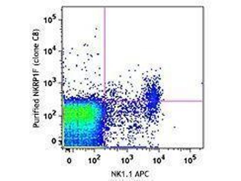 CD161, also known as NKRP1f, is mainly expressed on NK cells with little to no expression on T or B cells. NKRP1f on the surface of dendritic cells can bind to Clr-g expressed on activated T cells and result in production of IL-2 and proliferation of T cells. NKRP1f may also play a role in the formation of synapses between T cells and antigen presenting dendritic cells.