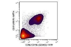CCR6, also known as CD196, is a chemokine receptor that is expressed on immature dendritic cells, B lymphocytes, and memory T cells. CCR6 binds CCL20, although members of the β defensin family also bind CCR6 with a lower affinity. CCR6 positive cells, and its ligand CCL20, have been detected in numerous organs, especially the secondary lymphoid organ. CCL20 is selectively made by the follicle-associated epithelium (FAE) overlying Peyers patches (PPs) and isolated lymphoid follicles (ILFs). CCL20 contributes to the recruitment of CCR6-expressing B cells to these structures. In humans, CCR6 can function to mediate arrest of T cells on dermal endothelial cells and is highly expressed on T cells resident in both normal and psoriatic skin. CCR6 and/or CCL20 have been implicated in the pathogenesis of rheumatoid arthritis and inflammatory bowel disease. Human T cells that are able to produce IL-17 express CCR6. It suggests that CCL20 and CCR6 have a role in inflammatory diseases by recruiting Th17 cells to target tissues.