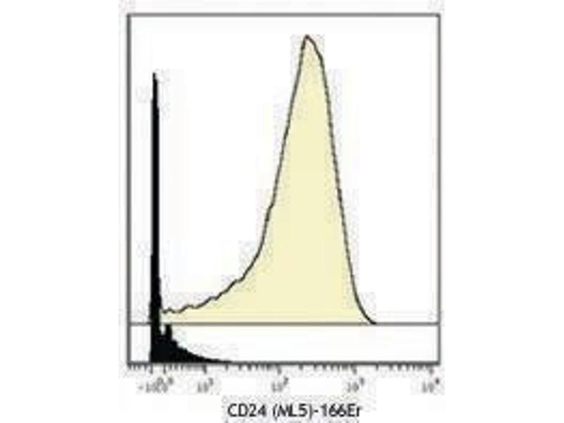 CD24 is a 35-45 kD glycosylphosphatidylinositol (GPI)-linked protein also known as heat stable antigen (HSA), BA-1, Ly-52, and nectadrin. It is expressed on the surface of B cells (but not plasma cells), granulocytes, follicular dendritic cells, and epithelial cells. CD24 may play a role in the regulation of B-cell proliferation and maturation. CD24 crosslinking induces a Ca2+ flux in mature B cells. CD24 has been shown to interact with CD62P (P-selectin).