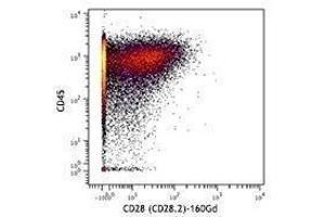 - CD28 is a 44 kD disulfide-linked homodimeric type I glycoprotein. It is a member of the immunoglobulin superfamily and is also known as T44 or Tp44. CD28 is expressed on most T lineage cells, NK cell subsets, and plasma cells. CD28 binds both CD80 and CD86 using a highly conserved motif MYPPY in the CDR3-like loop. CD28 is considered a major co-stimulatory molecule, inducing T lymphocyte activation and IL-2 synthesis, and preventing cell death. In vitro studies indicate that ligation of CD28 on T cells by CD80 and CD86 on antigen presenting cells provides a costimulatory signal required for T cell activation and proliferation.