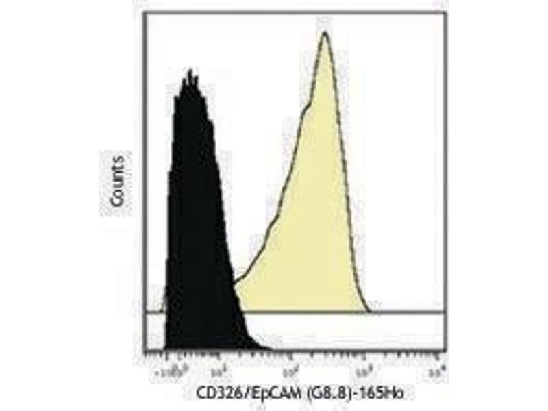 EpCAM (CD326) mediates calcium-independent homophilic cell to cell adhesion. It may also function as a growth factor receptor. It is thought to be involved in maintaining cells in position during proliferation. Expression of EpCAM seems to correlate inversely with the level of E-cadherin (CD324). EpCAM is considered important in tumor biology.