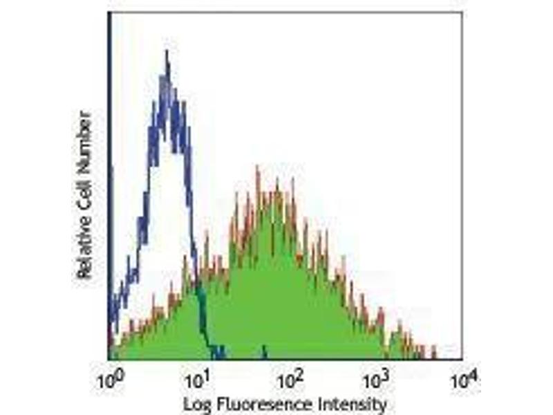 - CD47 also known as Rh-associated protein, gp42, integrin-associated protein (IAP), and neurophilin, is a 42-52 kD member of the immunoglobulin superfamily containing a five-pass transmembrane attachment. Two splice variants have been described in the cytoplasmic tail, the shorter form is expressed in bone-marrow-derived cells, endothelial cells, and fibroblasts while the longer form is expressed by neural tissues. CD47 expression is widely distributed in hematopoietic cells including thymocytes, T cells, B cells, monocytes, platelets, and erythrocytes as well as epithelial cells, endothelial cells, fibroblasts, and neural tissues. CD47 functions as an adhesion molecule and thrombospondin receptor and is non-covalently associated with β3 integrins CD51/CD61, CD41/CD61. Thrombospondin is a ligand for CD47, in the absence of CD47 mice show defects in host defense and β3 integrin-dependent ligand binding, migration, and cellular activation. CD47 is also part of the Rh complex on erythrocytes. The CC2C6 antibody recognizes human CD47 and has been shown to be useful for flow cytometry.