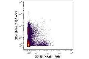 CD49b is a 150 kD glycoprotein, also known as α2 integrin, VLA-2 α chain, Integrin α2 chain, and HMα2. It is a member of the integrin family, expressed on NK cells, a subset of splenic CD4+ T cells, NK-T cells, intestinal intraepithelial and lamina propria lymphocytes, epithelial cells, and platelets. By associating with CD29 (integrin β1 subunit), CD49b forms the VLA-2 (integrin α2β1 ) complex. It plays a critical role in both adhesion and lymphocyte activation. The primary ligands for CD49b are collagen, laminin, and fibronectin. The HMα2 antibody has been shown to be useful for partially blocking CD49b mediated interactions with collagen. Additionally, this antibody blocks staining of splenic NK cells by the monoclonal antibody DX5.